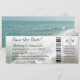 Convites de Bilhete, belo fundo de cena do oceano com convite em estilo de bilhete. Salve a data para o seu casamento no destino, casamento de cruzeiro ou casamento na praia com este convite de bilhete único. Personalize online com suas informações.