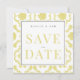 Botão Elegante Damasco amarelo Preto e Texto amarelo Salve a data. Casamento. Elegante. Simples. Quadrada. Opção de download digital.