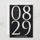 Este cartão de identidade moderno e ousado apresenta a data do seu casamento em algarismos extras em branco, em fundo preto. Os nomes dos casais e o local do casamento são exibidos dentro do zero durante meses de janeiro a setembro e à esquerda do numeral um para meses de outubro a dezembro. Este chic salve o cartão de data fará uma declaração e dará o tom para o seu casamento. A parte de trás da data de gravação tem espaço para uma fotografia de página de cheio.