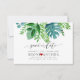 Script de pincel de na moda PixDezines, um verde de folhagem tropical, salva a data cor de fundo DIY e um coração vermelho. Os designs dinâmicos PixDezines permitem editar qualquer elemento neste modelo de convite. Copyright © 2018 PixDezines.com™ e PixDezines™ em zazzle.com. Todos os direitos reservados.