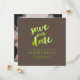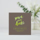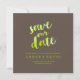 O script de pincel de na moda PixDezines salva a data em limão / verde neon (folha de rosto) com a cor de fundo da cinza de inverno DIY. Os designs dinâmicos PixDezines permitem editar qualquer elemento neste modelo de convite. Copyright © 2016 PixDezines.com™ e PixDezines™ em zazzle.com. Todos os direitos reservados.