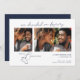 Um design de fotos contemporâneo para convidar seus convidados para salvar sua data de casamento com um roteiro de na moda para Nós decidimos On Forever no topo em marinho azul. A palavra "e" entre seus nomes está em uma escrita decorativa. O resto do texto pode ser facilmente personalizado. Faça o upload fácil de suas fotos favoritas para substituir as amostras no modelo. Um plano de fundo azul-marinho de coordenação também está no verso. Isso pode ser alterado para outra cor se você desejar por meio da opção personalizar mais, assim como o texto de cor azul do marinho.