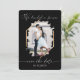 Este elegante e simples noivado de casamento fotográfico, que salva a data, é perfeito para qualquer casal moderno. Ele apresenta uma vinheta de halo brushbrashbrashbrath em cima de uma foto do casal esboçada em uma falsa borda de diamante de folha de ouro com tipografia de assinatura manuscrita branca. É mínimo, chique, bonito e bonito anunciar seu dia especial. No verso há uma configuração de texto simplista com a frase "O futuro Sr. e Sra." ***NOTA IMPORTANTE do DESIGN: para qualquer solicitação de design personalizada, como produtos correspondentes, alterações de cor, mudanças de posicionamento ou qualquer outra solicitação de alteração, por favor, envie uma mensagem ao designer. Você pode até enviar uma solicitação para um design completamente personalizado e novo.