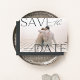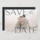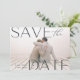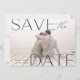 Anuncie sua data de casamento em estilo inesquecível com esses cartões salve a data elegantes e modernos, com uma foto horizontal ou paisagística de cheio com "salve a data" sobreposta em letras negras suaves nos cantos. Sua data de casamento aparece dentro da letra D, com seus nomes e local de casamento junto. Personalize as costas com detalhes adicionais, como o seu site de casamento.