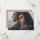 Anuncie sua data de casamento em estilo inesquecível com esses cartões salve a data de fotos elegantes e modernos, apresentando uma foto horizontal ou paisagística com "salve a data" sobreposta em letras brancas ao longo da base. Seus nomes, data do casamento e local do casamento aparecem em letras modernas. Personalize as costas com detalhes adicionais, como o seu site de casamento.