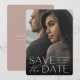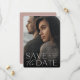 Anuncie sua data de casamento em estilo inesquecível com esses cartões salve a data elegantes e modernos, com uma foto vertical ou retrópica de cheio com "salve a data" sobreposta em letras brancas ao longo da parte inferior. Seus nomes, data do casamento e local do casamento aparecem junto com a letra moderna. Personalize as costas com detalhes adicionais, como o seu site de casamento.