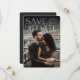 Anuncie sua data de casamento em estilo inesquecível com estes cartões salve a data elegantes e modernos, com uma foto vertical ou retrópica de cheio sangrando com "salve a data" sobreposta em letras brancas no topo. Seus nomes, data do casamento e local do casamento aparecem junto com a letra moderna. Personalize as costas com detalhes adicionais, como o seu site de casamento.