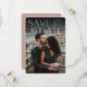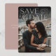 Anuncie sua data de casamento em estilo inesquecível com estes cartões salve a data elegantes e modernos, com uma foto vertical ou retrópica de cheio sangrando com "salve a data" sobreposta em letras brancas no topo. Seus nomes, data do casamento e local do casamento aparecem junto com a letra moderna. Personalize as costas com detalhes adicionais, como o seu site de casamento.