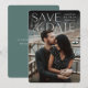 Anuncie sua data de casamento em estilo inesquecível com estes cartões salve a data elegantes e modernos, com uma foto vertical ou retrópica de cheio sangrando com "salve a data" sobreposta em letras brancas no topo. Seus nomes, data do casamento e local do casamento aparecem junto com a letra moderna. Personalize as costas com detalhes adicionais, como o seu site de casamento.