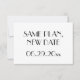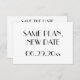 Cartões planos de Save The Date em estilo Minimal Art Deco branco com texto mutável Mesmo Plano Nova Data
