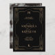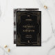 Este casamento glamouroso salve os cartões de data... com um giro moderno no deco de arte clássico. Um ornamentado, falso quadro geométrico dourado e ornamentação decoram um fundo preto elegante para um olhar dramático e vintage. Sua foto favorita vai para o fundo.