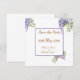 Este convite de casamento save the date apresenta flores de glicínias em estilo aquarela em cascata em torno da sua redação personalizada