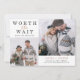 Este simples e na moda de casamento salve o cartão de data para sua nova data de casamento remarcada apresenta duas das suas fotos pessoais favoritas, juntamente com o clássico texto elegante de cinza escura e o falso roteiro de ouro rosa que diz "vale a pena esperar" por um olhar minimalista espantoso.