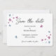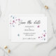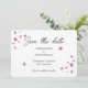 Deixe o seu amor voar com este belo cartão "Salve a Data", adorado com pequenas borboletas pastel em rosa e azul. Colocado contra um fundo branco nítido, o design sussurra elegância e inocência — ideal para casamentos com primavera, jardim ou temas românticos.