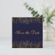 Reserve A Data Delicar Folhas Azuis e Douradas Salvar Data