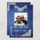 Lindo fundo denim com pérolas e renda, salve os convites de data. Modelo fácil de usar para carregar sua foto de noivado e adicionar suas informações personalizadas. Personalize com suas fontes e cores favoritas.