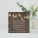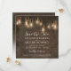 "Anúncio de Salve o Dia do Depósito Industrial de Tijolo com Luzes de Edison Antigas. Anuncie seus próximos núpcias com o tema da sua celebração - uma mistura perfeita de charme urbano rústico e iluminação romântica. O fundo é áspero, desgastado, envelhecido e envelhecido tijolo antigo em tons profundos e ricos com luzes de Edison penduradas. Direitos autorais, Audrey Jeanne Roberts, todos os direitos reservados.