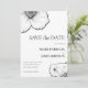 Crie uma ótima primeira impressão em seus convidados com este cartão de Save The Date formal, floral e monocromático. Um grande título lê SAVE the DATE, ou personalize para dizer SAVE OUR DATE. Uma fonte pequena, cursiva e clássica especifica: para as núpcias de. Esta linha é seguida por duas sub-títulos em letras maiúsculas que soletram os nomes da noiva e do noivo. 💍 Um bloco de linhas em fonte serifada atemporal soletram o dia e o ano, seguido pelo local do casamento. Uma linha adicional informa que um convite formal de casamento será enviado posteriormente. Todo o texto é personalizável para refletir seus dados nupciais. 🌸 Desenhos elegantes de arte de linha fina de pétalas de flores de Clematis montana enquadram o anúncio na frente. O verso do cartão postal oferece um código QR personalizável que se vincula ao seu site. Abaixo estão as iniciais da noiva e do noivo, seguidas pelo endereço do seu site de casamento soletrado. Personalize e adapte todas as linhas conforme necessário. Dois desenhos artísticos diferentes de flores de Clematis criados à mão adornam o topo do cartão botânico e moderno. Fique atento