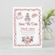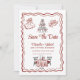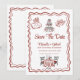 Este caprichoso save the date de casamento com tema italiano apresenta desenhos e rabiscos estilo à mão em vermelho. Uma moldura de linha ondulada emoldura o convite romântico inspirado na Itália. Um tema perfeito para o casal que vai para uma lua de mel italiana romântica após o casamento. Este design de save the date disponível apenas para impressão.
