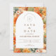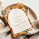 A refined western-inspired design featuring warm desert florals, cacti, and earthy botanicals arranged in a rich, painterly composition. The arched layout adds a timeless architectural feel, balancing the bold surrounding pattern with a clean, elegant center. Terracotta tones, soft neutrals, and muted greens create a grounded yet romantic palette—perfect for a modern desert or western celebration. Ideal for couples who want something unique, artistic, and effortlessly sophisticated.