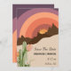 Este casamento de destino do deserto, exceto que a data é perfeita para o seu casamento no deserto moderno. Esta design apresenta uma tipografia simples e preta com um fundo cor de laranja roxo e cor-de-sol poeirento com areia do deserto e cacto para combinar o seu casamento clássico ou o casamento minimalista de vassoura no primavera, verão, outono ou inverno. Por favor, sinta-se à vontade para nos contactar com quaisquer perguntas sobre este design ou se quiser que ajudemos a produzir um determinado produto que deseja.