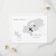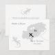 Cartão de salvar data de casamento de destino elegante para casais que se casam em Ibiza. Com símbolos de lagartixa, um mapa em silhueta cinza prateado e corações de amor brancos. Muito bonito e fácil de personalizar com seus detalhes pessoais.