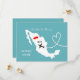 Um divertido salvar a data para casais que se casam no México, com um mapa de silhueta branca da Jamaica em azul turquesa com corações de amor vermelhos doces e muito fácil de personalizar com seus nomes e mensagem pessoal
