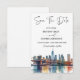 Celebre o seu amor com este convite de casamento com a silhueta de Nova York em aquarela, mostrando lindamente o charme de Nova York. Com uma ilustração suave em aquarela da silhueta de Nova York com um toque romântico de outono, este design combina sofisticação urbana com calor natural.
