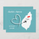 Um divertido lembrete de data para casais que se casam em St Lucia, com um mapa de silhueta branca em azul turquesa com corações de amor vermelhos doces e muito fácil de personalizar com seus nomes e mensagem pessoal
