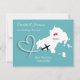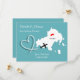 Um save the date divertido para casais que se casam em Skiathos com um mapa de silhueta branca em azul-turquesa com corações de amor vermelhos e muito fácil de personalizar com seus nomes e mensagem