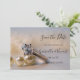Defina um tom de classe para sua cerimônia de casamento com os elegantes Anéis de Diamante e Pérolas Salvem o Cartão de Anúncio de Data. Este bonito nupcial personalizado mantém o anúncio da data com uma fotografia de fechamento de um anel de noivado de diamante redondo, com um colar de pérolas brancas e um fundo de cinza de luz desfocado.