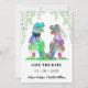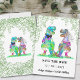 Alegre-se com este engraçado dinossauro temido casamento T Rex noiva e noiva com folhagem de floresta. Fácil de personalizar com os nomes da noiva e do noivo e a data do casamento. Colorida coloração d'água T Rex noiva e ilustrações nobres com tipografia moderna. Arte original única da artista Catherine Sweetman