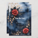 Arranjo elegante de rosa com folhagem de ouro num fundo azul-escuro de cor aquosa. Um na moda, design decorativo com rosas vermelhas, folhas escuras e sotaques ouros sobre um fundo azul profundo, semelhante a aquarela. O delicado quadro de ouro e posicionamento equilibrado das flores dão ao filme um apelo refinado e sofisticado. Perfeito para quem adora arte floral elegante, rosas românticos e contrastes de cor luxuosos. Ideal para arte de parede, decoração doméstica, acessórios de moda e presentes com um toque de sofisticação.