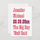 "Noiva. Noivo. Data do Casamento. O Grande Dia. É só isso." Um cartão de convite de casamento engraçado, personalizado, divertido, legal e simples para salvar a data. Personalize o cartão com a data do seu casamento, local do casamento (cidade e estado) e os nomes da noiva e do noivo. Um ótimo e divertido cartão para salvar a data para todos os seus amigos, familiares e parentes. Um convite divertido para a noiva e o noivo enviarem como casal.