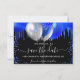Um fundo preto decorado com pingos azuis reais, confete e balões. Personalize e adicione uma data e nome/idade. O texto: Salvar a Data é gravado com um script de estilo com letra de tendência grande.