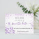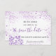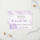 Uma garota e moda Salve o cartão de data para uma doce festa de aniversário 16, 16. Um fundo branco de na moda, decorado com pó brilhante violeta, colorido de lavanda e um vestido. Personalize e adicione uma data e nome/idade. Letras pretas e violetas. O texto: Salvar a Data é gravado com um script de estilo com letra de tendência grande.