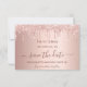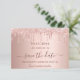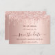 Uma moça e moda Salvem a data para uma doce festa de aniversário 16, 16. Um fundo rosa dourado feminino decorado com pingos de brilho azul rosa, pintura pingando. Personalize e adicione uma data e nome/idade. O texto: Salvar a Data é gravado com um script de estilo com letra de tendência grande com alternâncias.