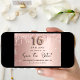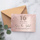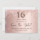 Uma garota e moda Salve o cartão de data para uma doce festa de aniversário 16, 16. Rosa dourado esmaecido fundo metálico decorado com ouro rosa, dourado e cinzas vítreas e poeira. Personalize e adicione uma data e um nome/texto. O texto: Salvar a Data é gravado com um script de estilo com letra de tendência grande com alternâncias. Número 16 com uma fonte no estilo do balão.