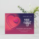 Dois Corações Batendo como Um (Versão 1) — Anúncio de Casamento Save the Date da Multiform apresenta dois corações vermelhos tridimensionais em negrito em um fundo vermelho radiante. Este design é ideal para quem procura um visual romântico e atraente que seja não tradicional e chame a atenção.