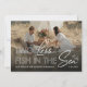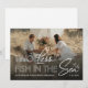 Moderno anúncio de salvar a data náutico apresentando uma foto de você e seu parceiro, o ditado fofo 'dois menos peixes no mar', 2 estrelas-do-mar, seus nomes e a data do seu casamento futuro.