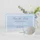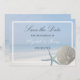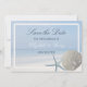 Estas cartões salve a data são perfeitas para qualquer casal planejando um casamento elegante na praia. A design apresenta um dólar de areia cremoso e um peixe-estrela azul-claro com um fundo azul esmaecido de praia. A design está acabada com uma delicada borda de areia. O design simples e fresco pode ser personalizado para se adequar ao seu evento especial e será o anúncio perfeito para qualquer festa temática na praia, incluindo chás de panela, noivados, chás de casamento, festas de aniversário e muito mais.