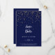 Este Dourado Confetti | Casamento de marinho, exceto a data é perfeita para um casamento simples e elegante. O elegante design de capricho apresenta confete falsa de ouro brilhante e caligrafia minimalista no marinho com uma moderna sensação de vaivém.