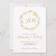 Dourada coroa floral sobre um fundo branco, um convite de festa de casamento personalizável.