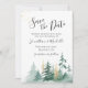 Casamento inspirador Salve a data retrata uma design de aquarela rustica com ouro brilhante elegante e pinheiros verdes. A parte de trás apresenta a canção Versa Bíblia de Salomão 3:4, "Eu encontrei o que minha alma ama." Boa escolha para o outono, o inverno e o Natal.