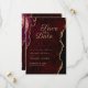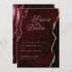 Elegante Glitter Burgundy Agate Salve o cartão Data. Chic Script Salve a data em burgundy e design de gemstone dourado.