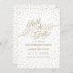 Estrelas de ouro pequenas e brilhantes brilham em nuvens de confete ao redor da borda desta bela placa branca e dourada Salve a Data, com um script de efeito brilho dourado, "Salve a Data". Rico, chic e encantador de uma só vez. Arte original de Colleen Michele. Por favor, note-se que não existe um verdadeiro efeito de brilho de ouro ou de folha de ouro nas estrelas e no guião; não será utilizada qualquer brilho, folha de ouro ou tinta metálica neste convite.