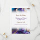 Anuncie seu casamento com sua elegante combinação de ouro metálico, roxo rico, azul real e aqua decadente. As cores parecem fluir por trás do texto que está sobre um fundo branco e pode ser personalizado com seus detalhes. Consulte os itens de coordenação nesta coleção.