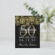 Design de "50ª Festa de aniversário" elegante com flocos de neve com falso Dourado e flocos brilhantes de falso em falso e luzes brilhantes em fundo preto (você pode mudar a cor de fundo para atender às suas necessidades) e nome personalizado + texto de detalhes.
