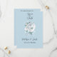 Um pequeno dragão branco senta-se entre rosas brancas contra um fundo azul-claro suave com flocos de neve delicados.