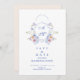 Uma design de casamento refinada e romântica com uma crista de monograma azul empoeirada, emoldurada por florais de aquarelas em lavanda pastel, blush e tons de pêssego. O layout inclui verde macio, serifa elegante e tipografia de script, e um formato de eterno perfeito para casamentos formais. Ideal para cerimônias de primavera ou verão com jardim, casa de mansão ou armação de capela. Totalmente personalizável com as iniciais, nomes, data, local e detalhes opcionais de recepção do casal. Um olhar moderno de herança com graça clássica.